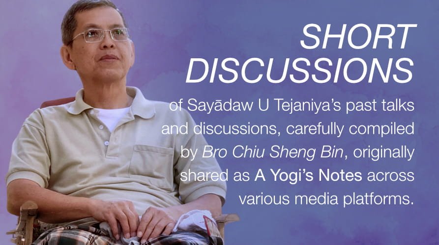 If you wish to dive straight into all the excerpts found on this website, this SHORT DISCUSSIONS will surely nourish your interest. They are not arranged by specific topic but preserved in the natural order in which they were discovered. Since 2016, Bro Chiu Sheng Bin has patiently listened to countless recordings, carefully extracting and preserving the words of Sayadaw U Tejaniya. What you find here is not only a compilation of teachings but also a testament to his interest and tireless devotion to the Dhamma.